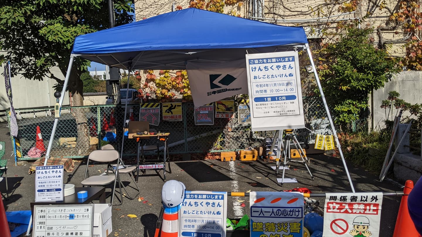 「けんちくやさん」として現場で使う機器や道具の体験エリアを設けました。